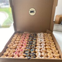 tiny little donuts are served as a generous dozen in a tiny little box or as a delicious box of 100. We offer many creative & tasty options for events of all sizes. Give us a call at 615-679-9422 for more info and to schedule your event or box of 100!