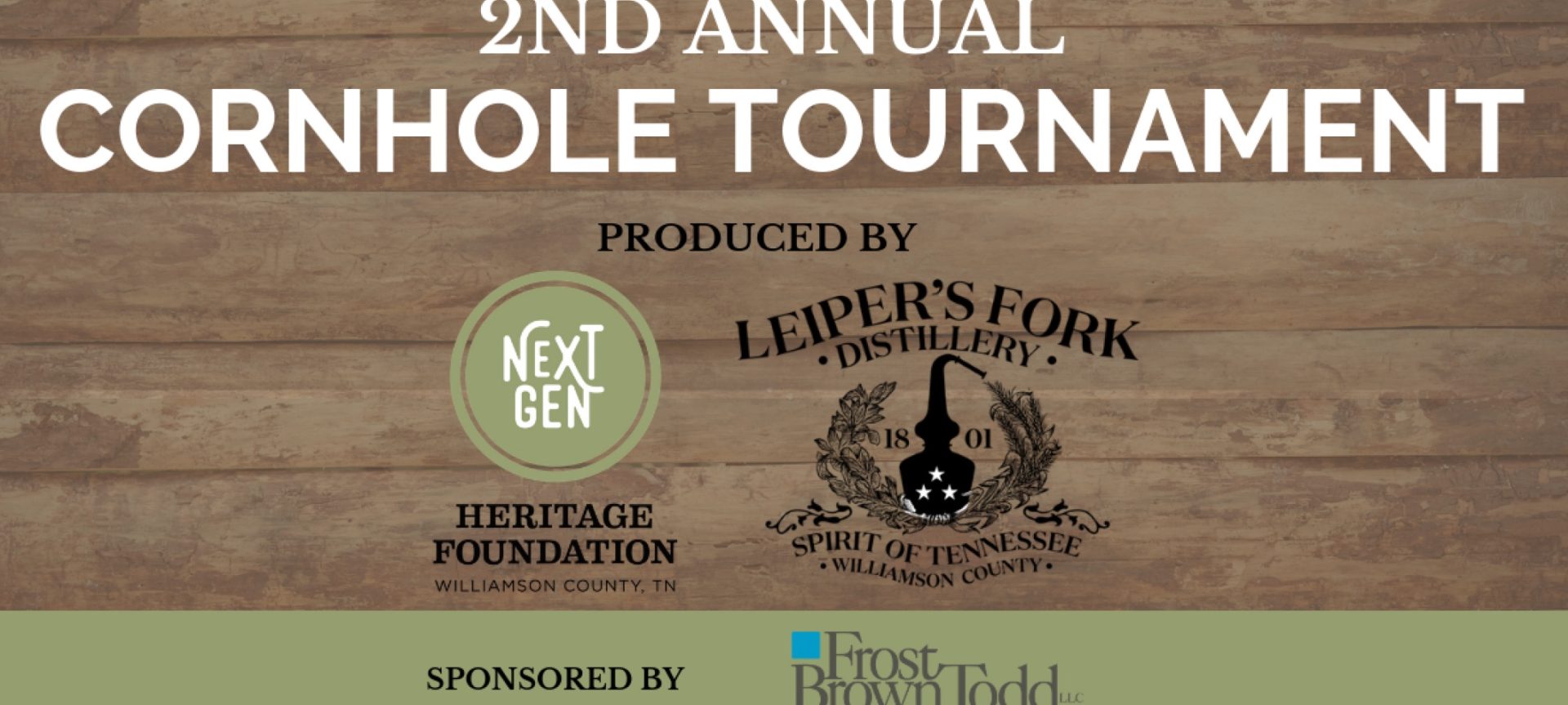 Heritage Foundation of Williamson County’s 2nd Annual Cornhole Tournament, produced by Next Gen Heritage Foundation and Leiper’s Fork Distillery will be held on May 18, 2019 at the distillery. See website for more information.