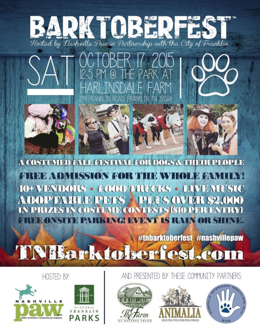 Celebrating its 7th year, Barktoberfest™ is Nashville’s costumed fall festival for dogs and their people! Hosted by Nashville Paw magazine, this event won third place for “BEST FESTIVAL” in The Tennessean’s 2013 Toast of Music City Awards and draws an estimated 3,000 guests and their pooch pals from across Middle Tennessee.