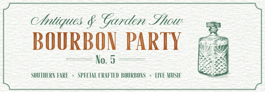 The 28th Annual Antiques and Garden Show of Nashville will take place in the heart of downtown at the Music City Center February 2–4. To celebrate and close out the first day of the Show, the Bourbon Party will be taking place Friday night, February 2. The annual Bourbon Party blends a mix of southern fare, special crafted bourbons and live music on the Show floor. Dress “Nashville cocktail-casual,” bring friends and sip the night away while you shop the largest, most unique collection of antiques and garden accoutrements in the country!