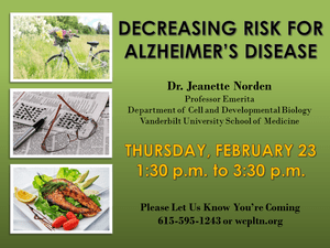 Decreasing Risk For Alzheimer’s Disease – WCPL