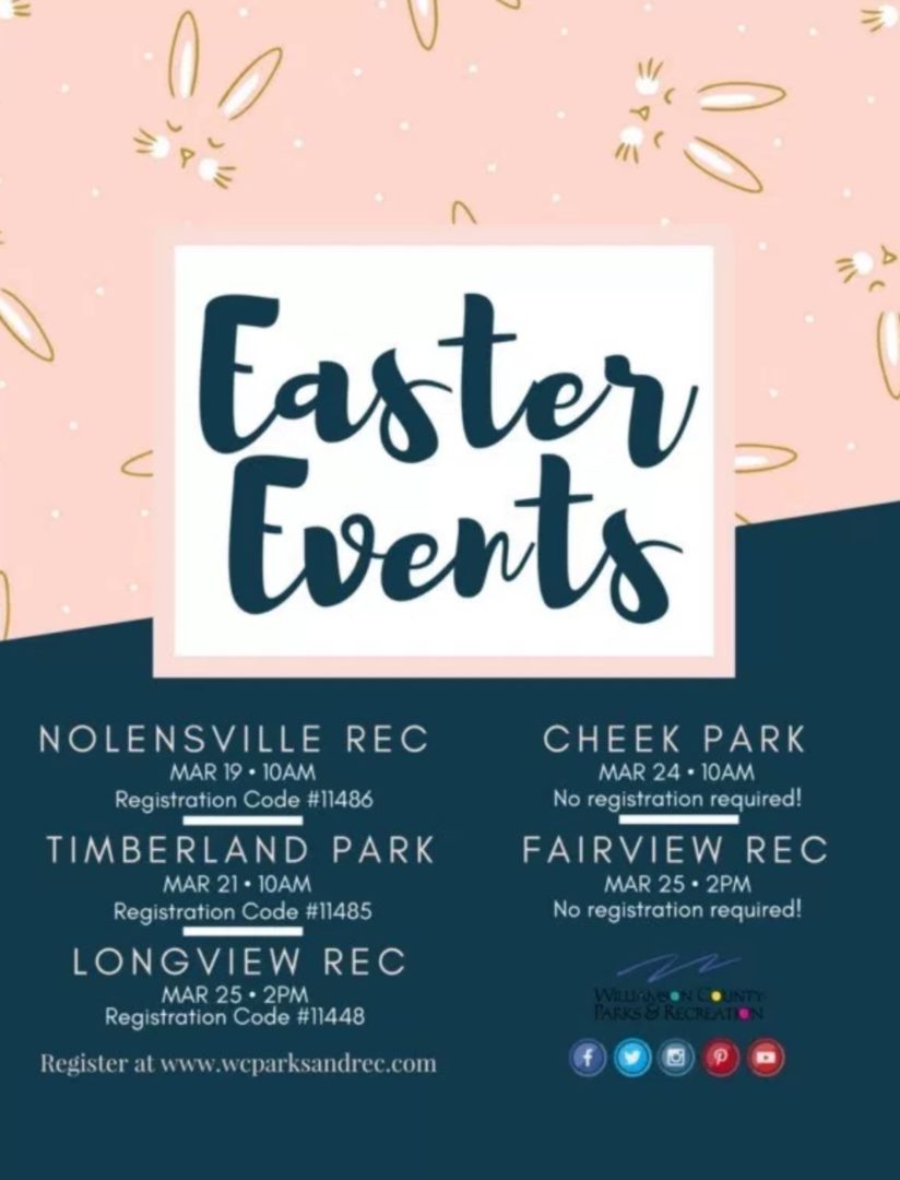 Williamson County Parks and Recreation is pleased to announce an Easter Eggstravaganza at Timberland Park on Wednesday, March 21.