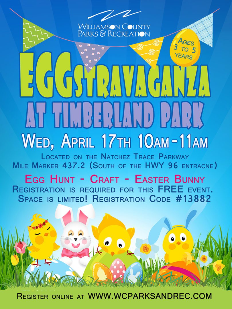 Williamson County Parks and Recreation will host a morning of Easter fun at the annual Eggstravaganza at Timberland Park on Wednesday, April 17 at 10:00 a.m.