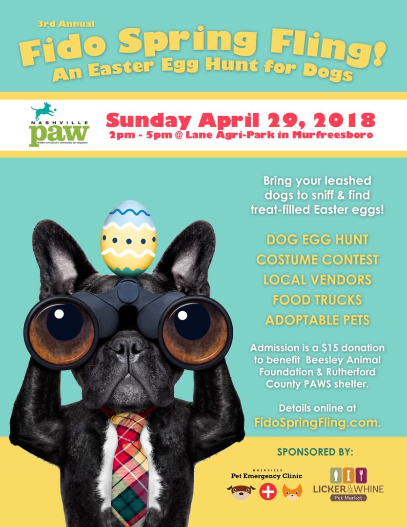 Celebrate spring with an Easter egg hunt for dogs, food trucks, vendors, contests and more at a spring festival for dogs and their people at our 3rd Annual Fundraiser benefiting Beesley Foundation and Rutherford County PAWS.