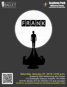 Williamson County Parks and Recreation is pleased to present “Frank” an empowering new production by Nashville Ballet on Saturday, January 27, 2018 at the Williamson County Performing Arts Center at Academy Park in Franklin, TN.
