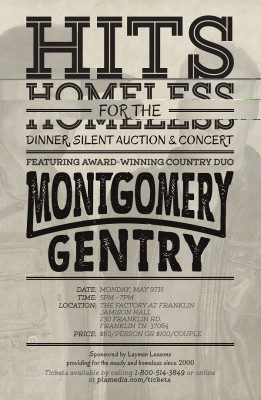 Hits For The Homeless featuring award-winning country duo Montgomery Gentry @ Jamison Hall – May 9 @ 5:00 pm – 7:00 pm – Franklin, TN.