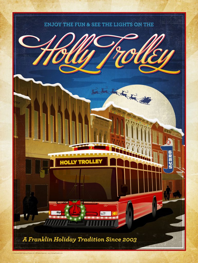 Participants will be treated to holiday refreshments thirty minutes prior to departure from the Transit Center in historic Downtown Franklin. New this year, in partnership with Westhaven, the event will feature the beautiful holiday light displays in Westhaven, downtown Franklin and surrounding areas in Williamson County.