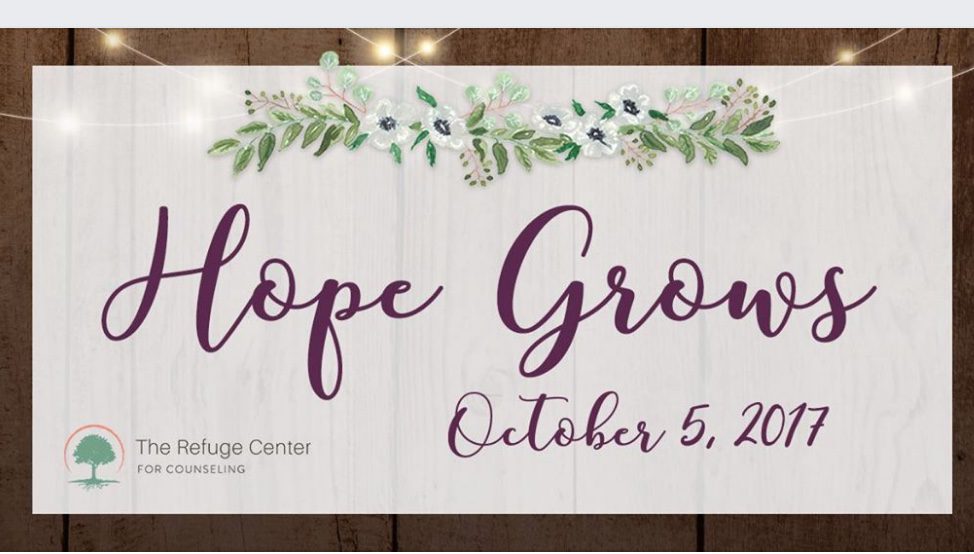 9/21/17 Update: Hope Grows is almost sold out! Don’t delay in reserving your seats. If you cannot come, but would still like to support the mission of The Refuge Center, and this event, please visit this page. Thank you!
