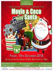Friday, December 14: Movies & Cocoa with Santa, 5:30 p.m., Williamson County Enrichment Center, 110 Everbright Avenue, Franklin, TN.