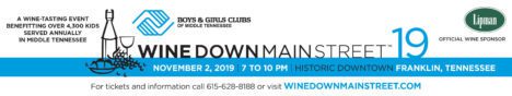 Mix and mingle with interesting people. Past attendees have been from 35 Tennessee cities, 26 states, Australia, England, France, Japan and Hong Kong. Enjoy one of the area’s best events; Wine Down Main Street was voted best fundraising event in Williamson County ten consecutive years. Feel confident that all proceeds will benefit over 4,000 Middle Tennessee youth served locally at nine Boys & Girls Clubs in Davidson and Williamson Counties. For further information, email Denise Carothers or call 615-628-8188.