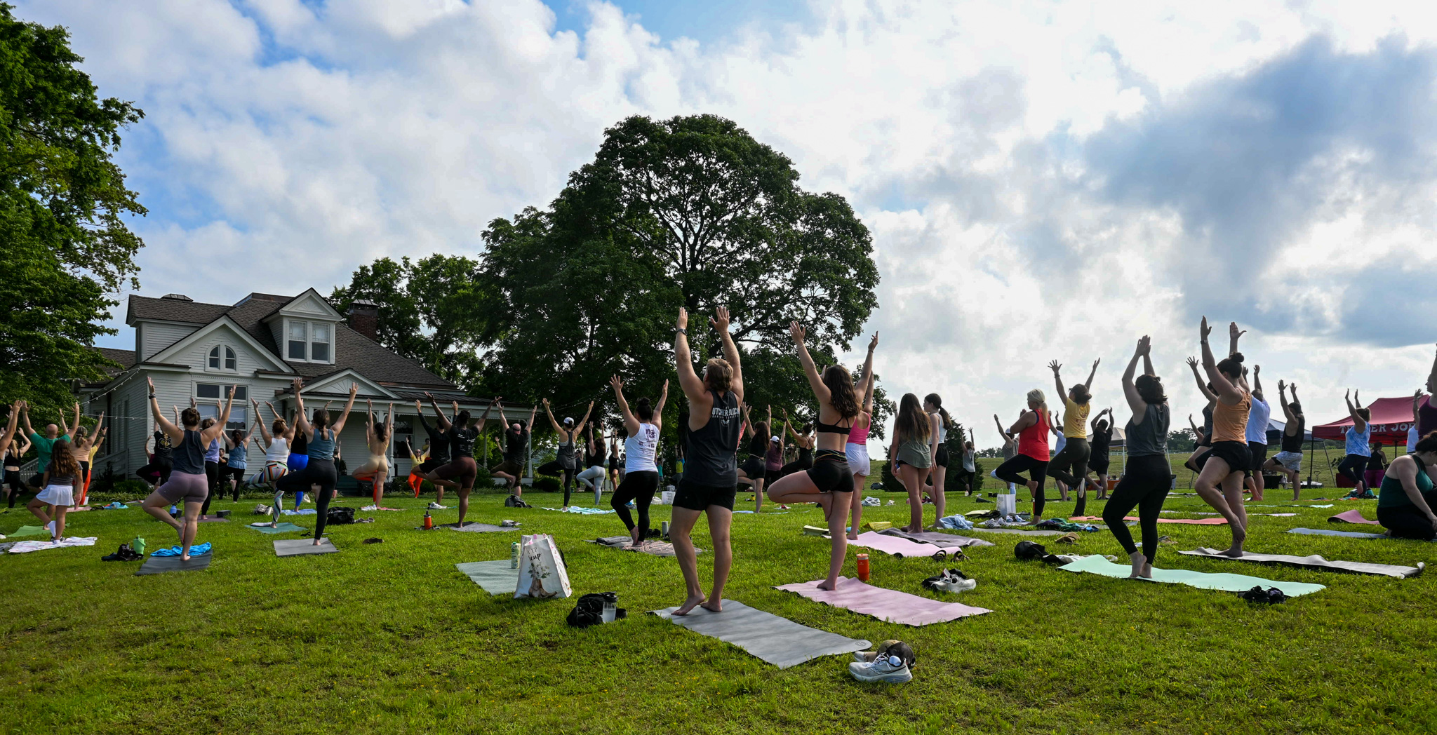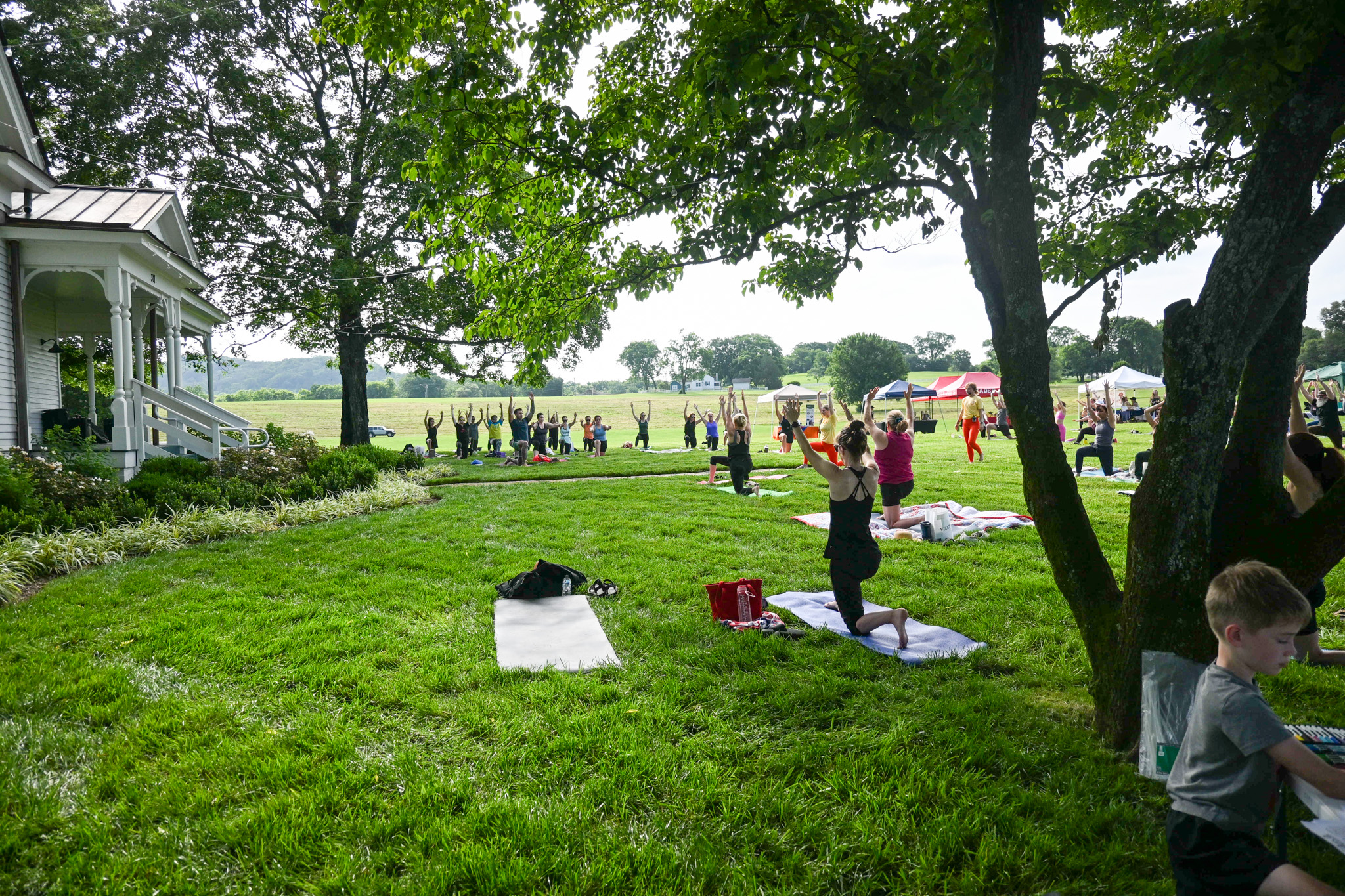 On Saturday, June 21, 2025, the Hayes House Lawn at The Park at Harlinsdale Farm was filled with movement and meaning as attendees gathered for Yoga in the Park 2025. The free event celebrated International Day of Yoga, a global observance adopted by the United Nations in 2014 to raise awareness of yoga’s physical, mental, and spiritual benefits, while raising funds for Ellie G’s Dream World, Franklin’s first public inclusive playground.