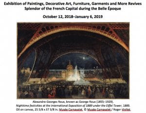 The objects will be presented in six groupings: “Paris, Showcase of the World”; “Art Nouveau”; “Paris, Capital of the Arts”; “The Parisian Woman”; “Traversing Paris”; and “Paris by Night.”