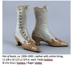 The creative energy and innovation of the fine art scene influenced the fashion industry. The birthplace of both haute couture and the department store, Paris was unquestionably the capital of the fashion world at the turn of the twentieth century. “The Parisian Woman” section explores the sartorial mastery that captivated and inspired countless artists, artisans, and writers. Advertisements, fashion plates, paintings, costumes and accessories, offer a comprehensive look at the period’s fashion. They include an evening gown designed by Rue Royale couturier Ernest Raudnitz, a velvet cape from Au Bon Marché (the first modern department store), hats by well-known Parisian milliners, button boots, and fans.