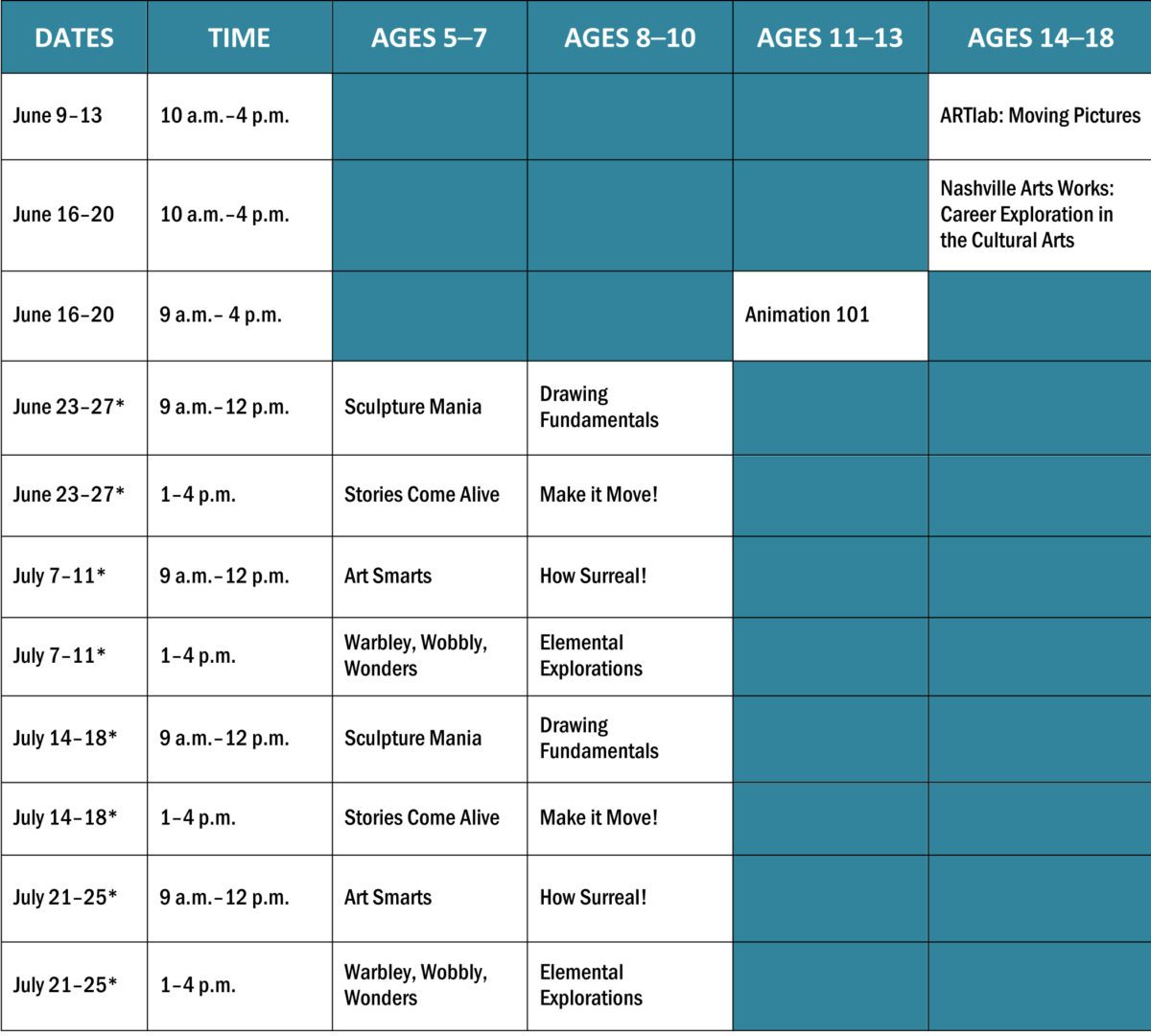 • Campers exhibit their artwork at the Frist Center: each camp session closes with a weekly art show on Friday from 4:00 to 5:00 p.m.