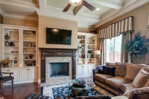 Ms. Picha’s upcoming listing illustrates this concept. Last winter Melanie Johnson, owner of Westhaven’s home design store Sanctuary South, purchased 1727 Championship Boulevard for $1.4 million. The 5,273 square-foot custom home on .43 acres has one of the largest yards in Westhaven, along with an outdoor entertaining kitchen, media room, gourmet kitchen and coffered ceilings. Johnson set about renovating. She re-did the bathrooms, painted throughout, replaced carpet with hardwood floors, and added gorgeous light fixtures and furnishings from Sanctuary’s sources, including Gabby Lighting Company and Uttermost Furniture. Although Johnson has no formal design training, she has a knack for coordinating pieces that set rooms apart. “I just choose what I like,” she says. “I don’t like carpet, and I wanted the lighting to be the style of today, not so ornate,” she said.