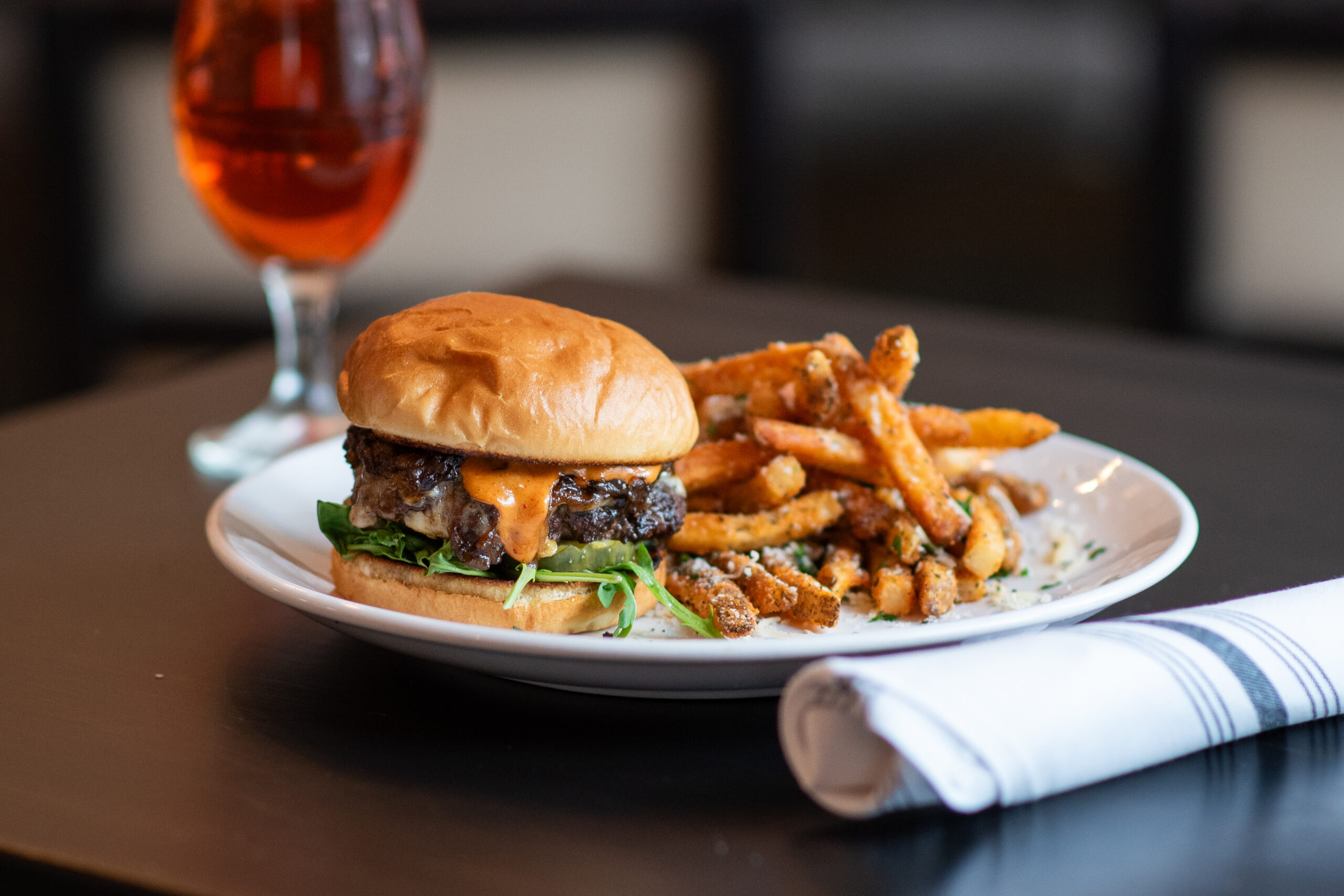 Guests can begin a meal at Karrington Rowe with small plates that strike a balance between culinary craftsmanship and tradition, including veal ricotta meatballs, butternut squash fritters or the dip duo, featuring hummus and pimento cheese with crostini and pita. The menu transitions into mains, offering standout dishes like pan-seared salmon with a chili plum glaze, hoisin marinated pork chops and perfectly tender filet mignon. During lunch, diners will find fresh, filling options like the famous French onion soup, arugula salad and a seasonal white fish sandwich.