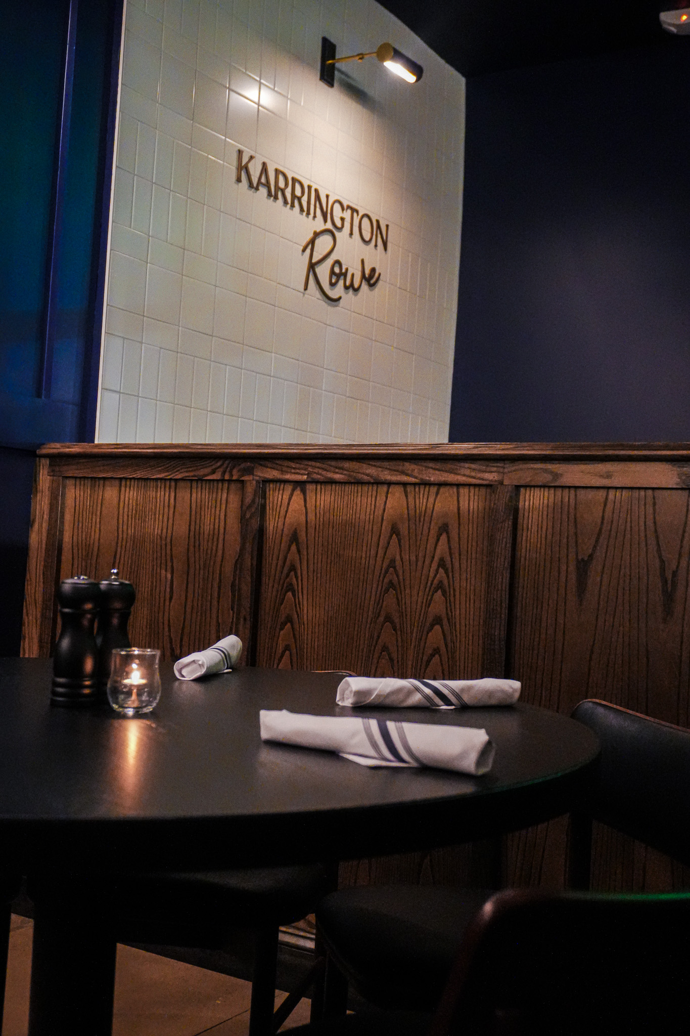 Designed to evoke warmth and connection, Karrington Rowe’s layout accommodates up to 130 guests, with spaces tailored for various occasions. The main dining area combines comfort with modern style holding banquettes and chair seating, while the bar invites conversation over drinks. The cozy atmosphere also features a dedicated space for semi-private gatherings of up to 30 guests. At launch, Karrington Rowe will employ 30 team members, underscoring Up Hospitality’s commitment to investing in the local community.