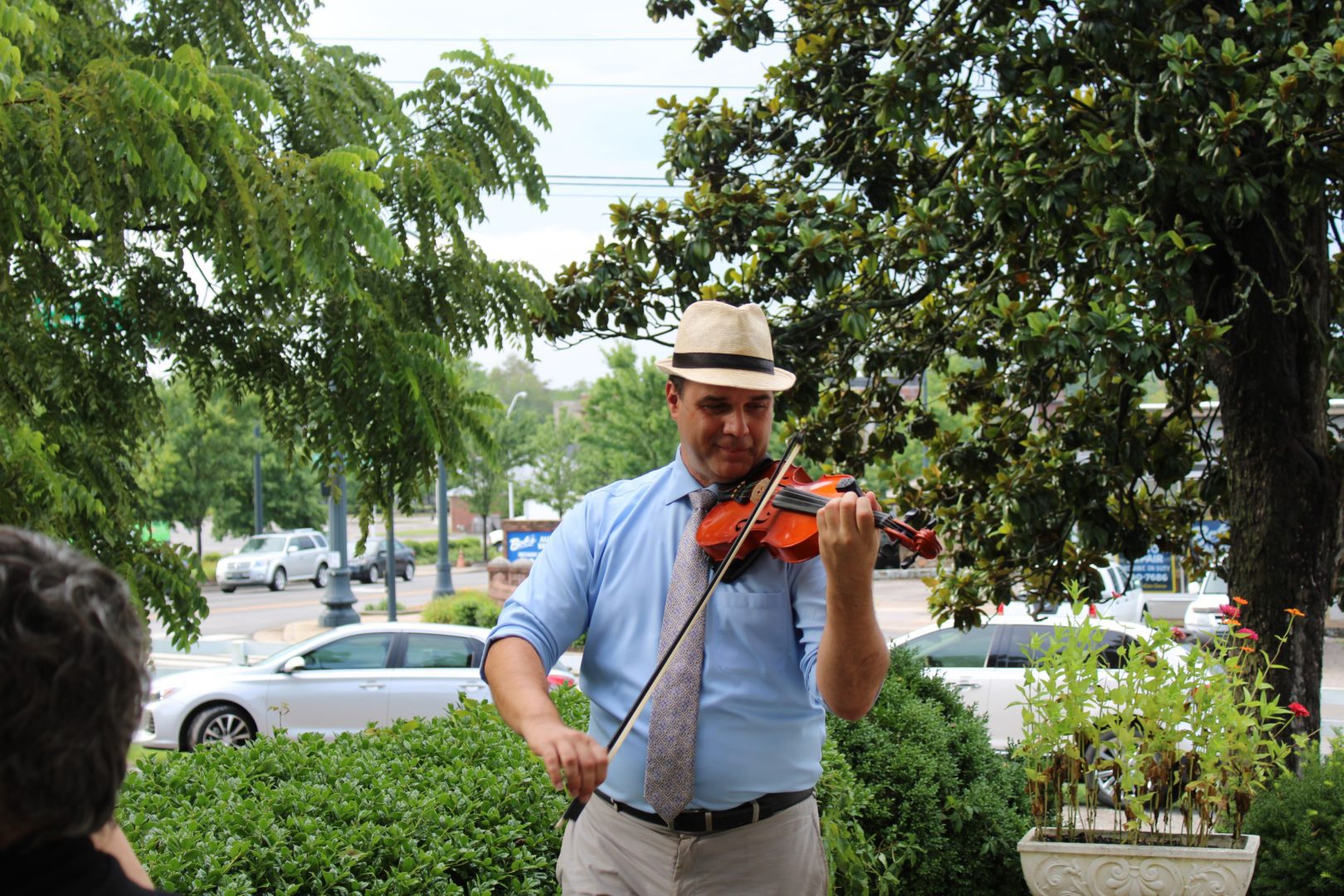 Lotz House Executive Director J.T. Thompson presented Hicks with a commemorative Hatch Show Print depicting “Chip” the Confederate soldier statue that resides on the Franklin Square. Senator Jack Johnson and Representative Sam Whitson read a proclamation to honor Hicks and his accomplishments. Cody Engdahl performed Civil War period music on his violin.