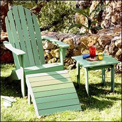 Adirondack Chairs are a classic American furniture staple. They are stylish, usable, and outdoor-friendly. Adirondack chairs come in various colors to day and coordinate with many different outdoor “looks”. The one pictured has an optional ottoman for example, giving it a little something extra. Outdoor throw pillows are widely available as well and help soften the seat and brighten the look.