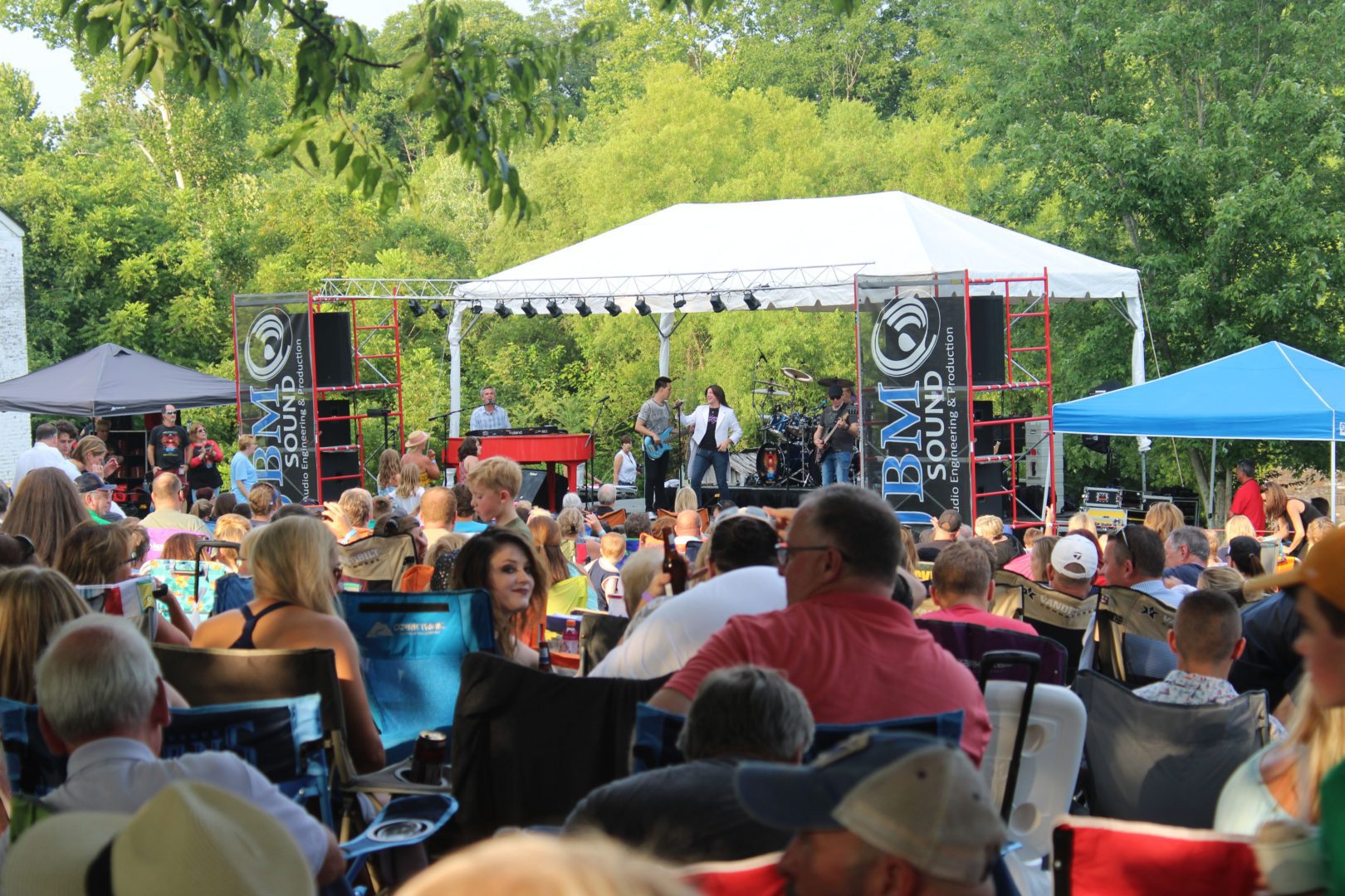 A large crowd gathered at Carnton on Sunday evening for an afternoon of fun. The Sunset Concert Series concluded its 2019 season with music from Resurrection-A Journey Tribute. Attendees assembled on the east lawn next to Carnton, accompanied by food offerings from Grilled Cheeserie, Cousin’s Maine Lobster, Roadhouse Grille, Tchoupitoulas Street Snow Cones, Moosic City Ice Cream and Waffles, TN Cobbler Company, South Street Coffee and Pandy Cotton Candy food trucks. Specialty drinks were served, including margaritas provided by Chuy’s, mint juleps, Lynchburg Lemonade, and Carnton’s own Sunset Breeze made with Tito’s Vodka. Edelweiss Boutique also offered a unique shopping experience on the lawn. The Sunset Concert Series raises funds for the Battle of Franklin Trust, which operates Carnton and Carter House. To learn more about the Battle of Franklin Trust, visit www.boft.org.