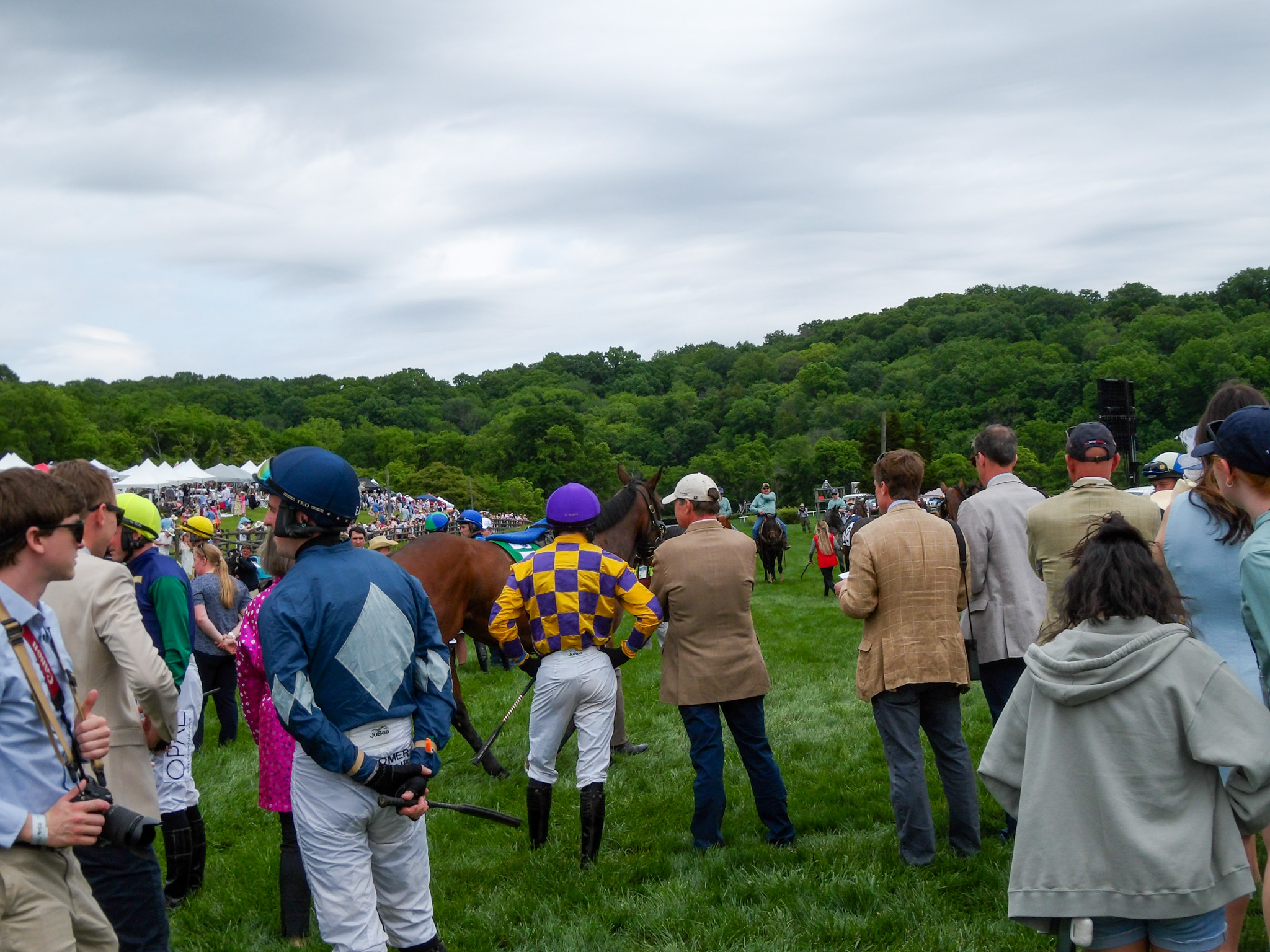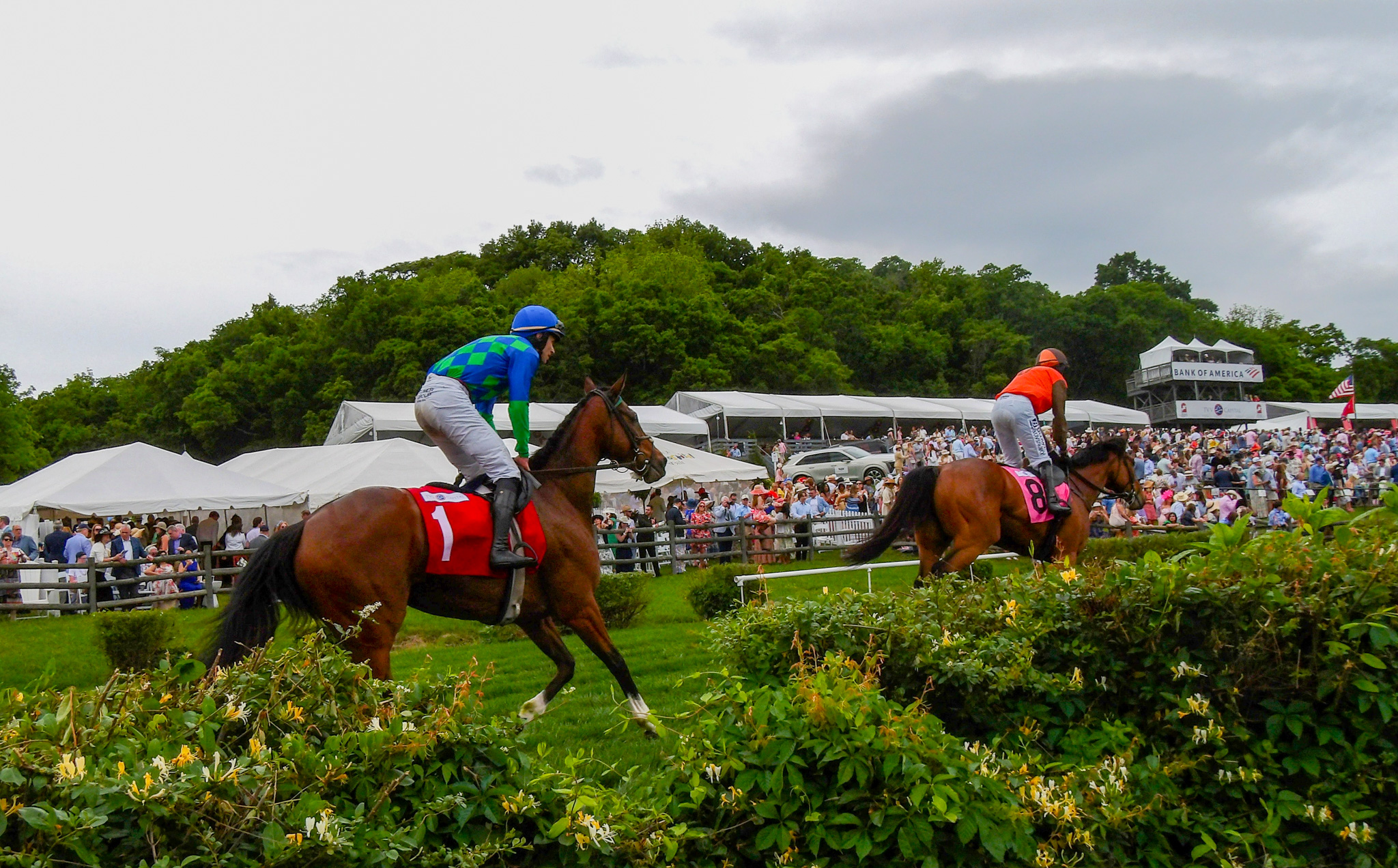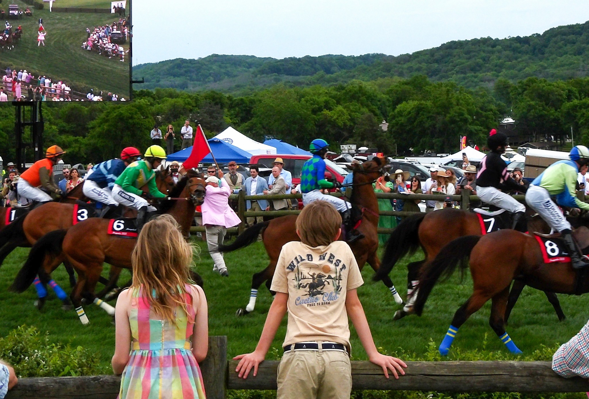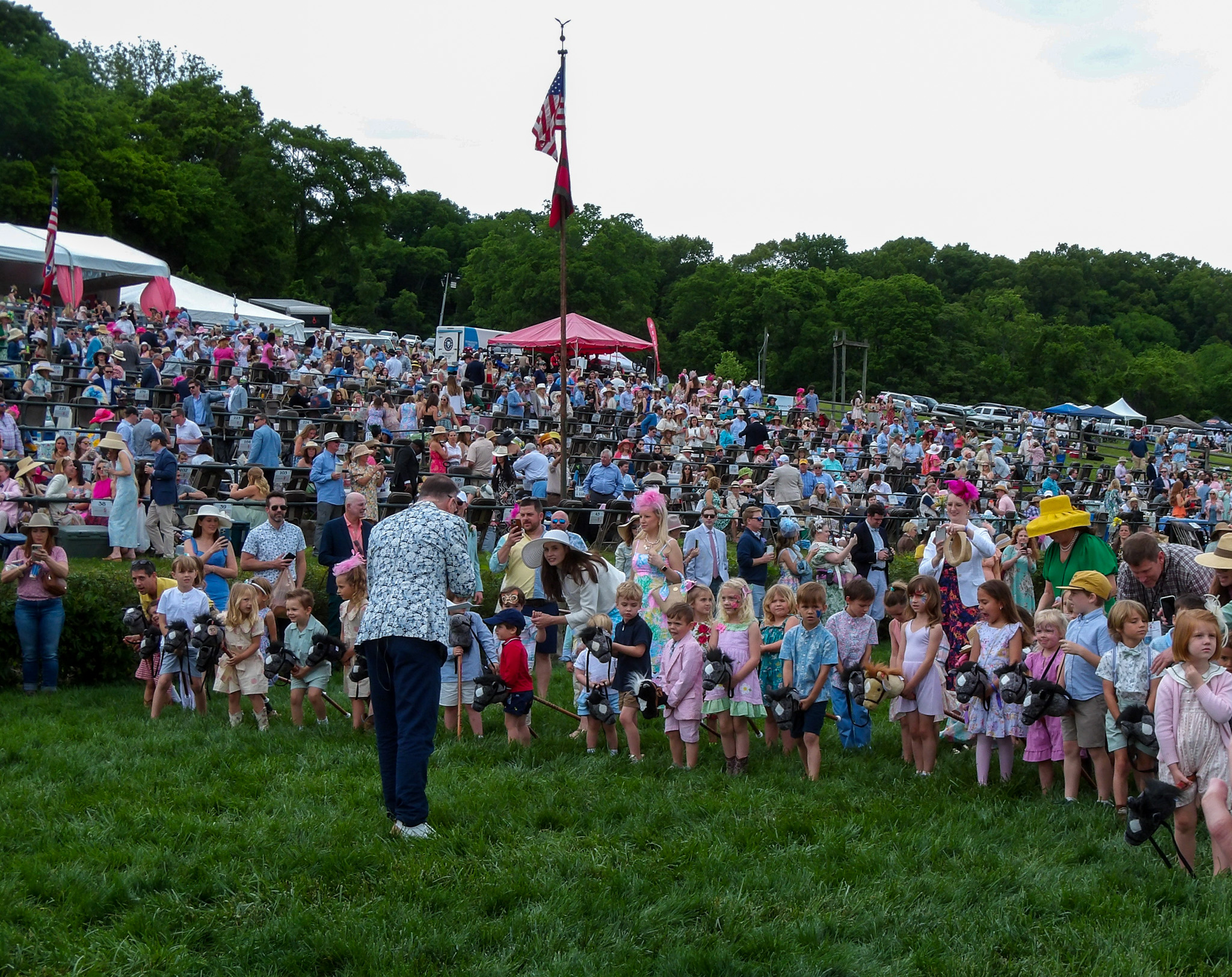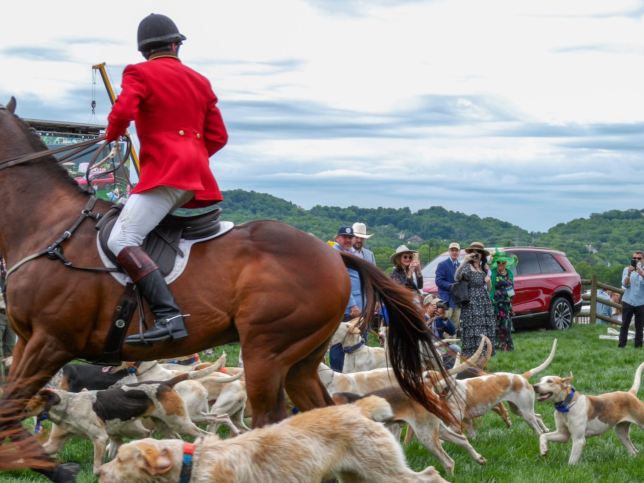 Race day begins with the opening ceremony, which includes the National anthem—performed this year by country artist Walker Montgomery—and the traditional Parade of the Hounds, which consists of a group of foxhounds accompanied by huntsmen on horses, paraded in front of the grandstands. Around 1 in the afternoon, the main event begins, and the races commence in order: