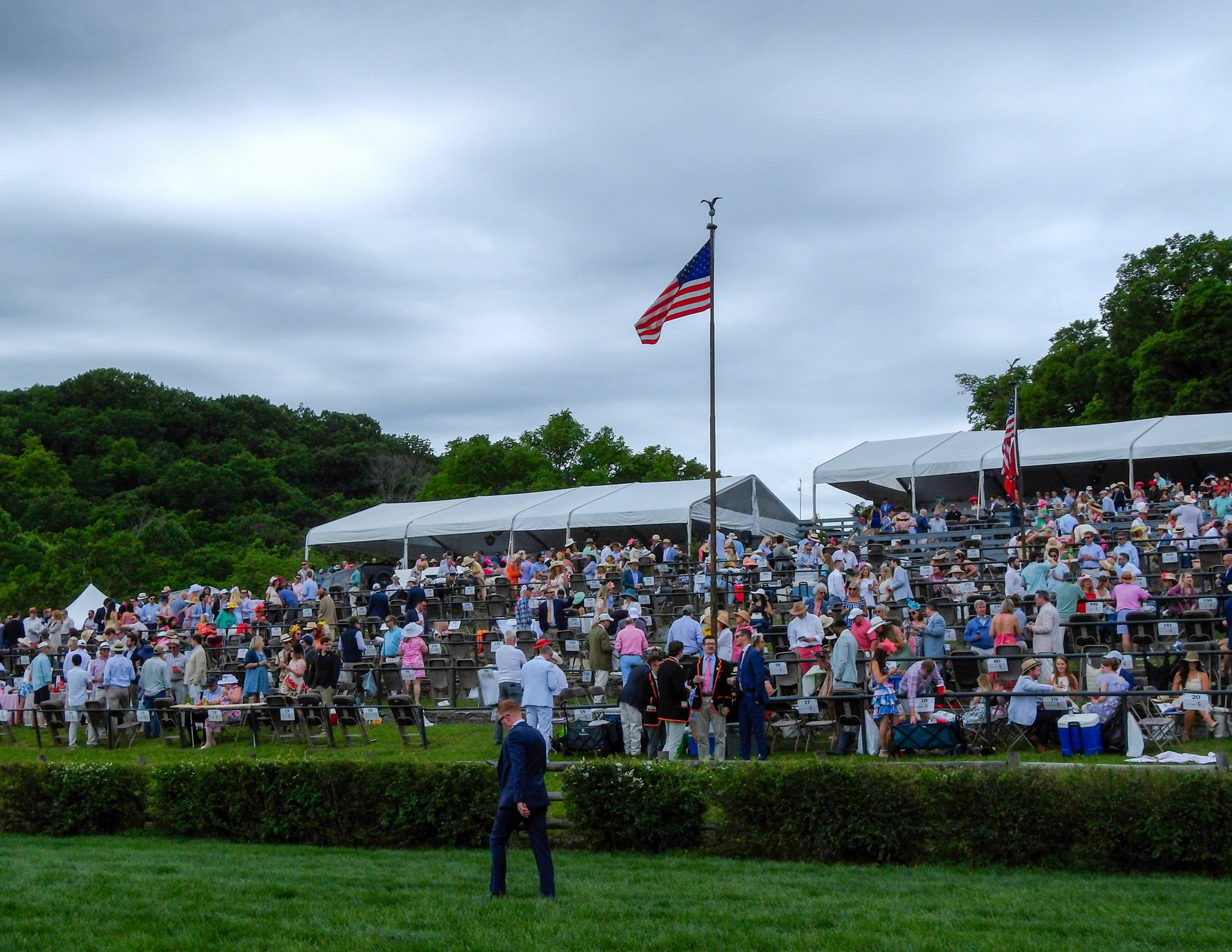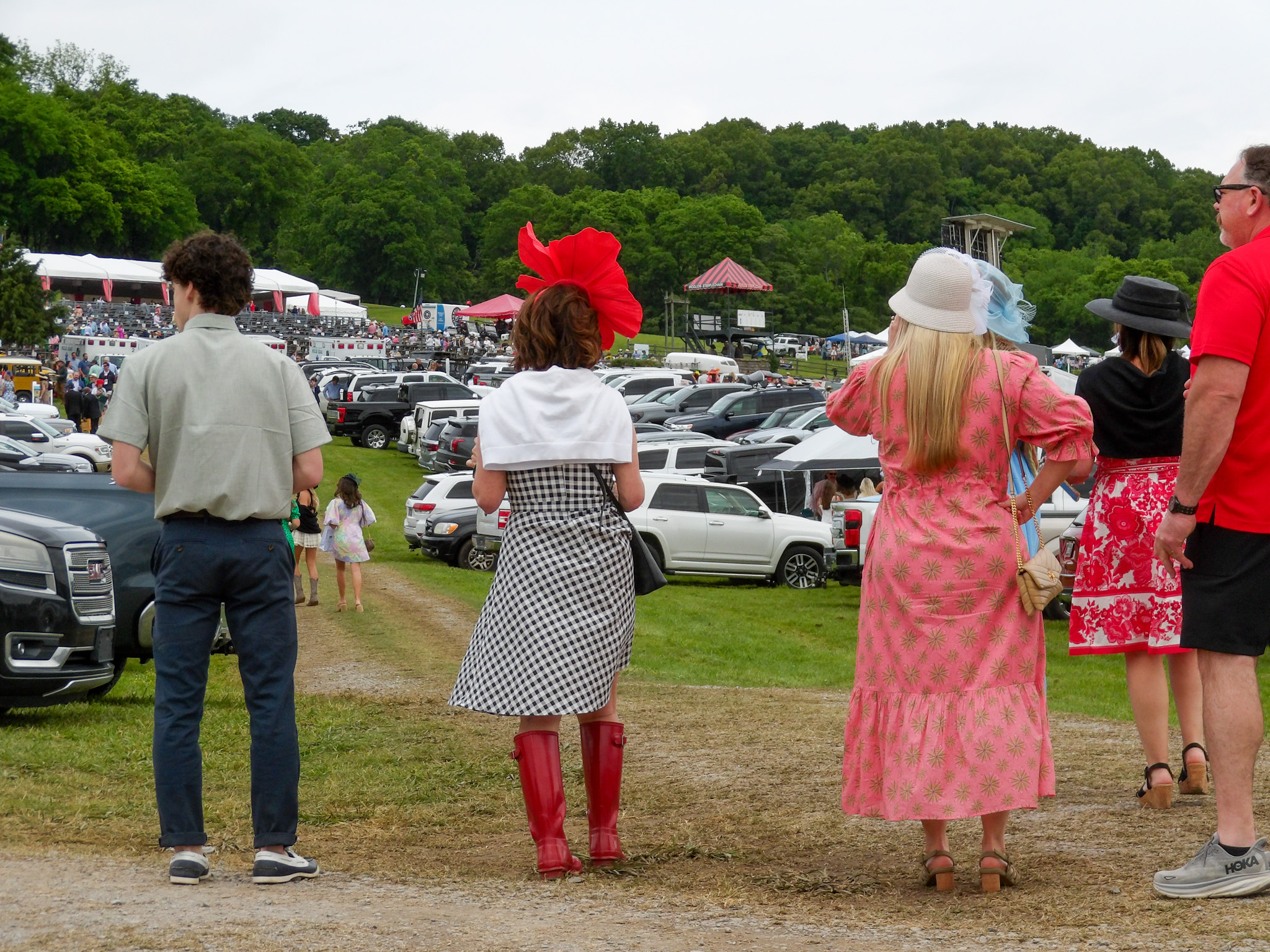 Despite the unpredictability of May in Tennessee, this year’s steeplechase event had fantastic weather; temperatures remained fairly cool—upper 60s to lower 70s—with overcast skies. The pleasant, gray day was punctuated by pastel colors, floral hats, and the sound of trumpets and bells, announcing the arrival of the horses and their jockeys for each race. Alongside fan-favorite traditions and new additions to the grounds, the 2025 event expanded its raceday schedule, adding an exciting 7th race to its typical line-up.