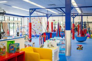 Samantha: There will be 12 main pieces of equipment in the gym, including a trampoline, a zip line, and various swings. The equipment is specifically designed to offer kids the sensory output or input they need.