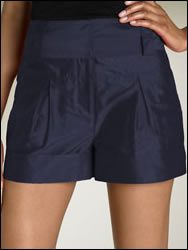 A fresh look that coordinates with a variety of shorts styles is loose-fitting peasant tops. Many of the current peasant tops, either short-sleeved or sleeveless, are made of lightweight cotton, gauzy fabrics, or thin chiffon. Shirts made of these fabrics are breezy and comfortable on hot summer days but retain a polished look that is stylish enough to wear day or night. Ella Moss and Catherine Malandrino both make great quality peasant tops that are available in boutiques or upscale department stores. For the mallrat, Banana Republic and tops by Kensie (available at Dillards) are good options.