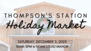 Thompson’s Station Holiday Market will be held this Saturday afternoon at Homestead Manor from 10am- 3pm. This holiday market will offer a variety of items from local artisans, crafters, and small businesses! Support these local makers and get your Christmas shopping done at Thompson’s Station Holiday Market this Saturday afternoon!