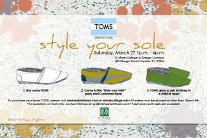 The Style Your Sole Party is community-wide service event we”re planning for this semester. O’More along with SGA is partnering with TOMS Shoes to host a Style Your Sole Party. There are several kinds of TOMS specifically meant to be customized and at Style Your Sole you can paint, draw, and sew all over your pair of TOMS! Basically, it’s a fun, creative way to give back. We are asking that everyone purchase their TOMS here: http://merissatomlinson.com/online_form/form.html The person who recruits the most people to purchase TOMS for the event will receive their TOMS FREE. (just be sure to order your TOMS and if you are the winner, you will be refunded.)