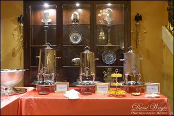 One of the biggest hits is chocolate shot machines. Ribbons of Chocolate, a local caterer, sets up these delicious stations for wedding guests. The Belgian chocolate is a melted, liquid drink with an assortment of flavors. Guests can take shots of chocolate all night and still drive home safely! After the wedding ceremony, dancing and enjoying delicious food, Cappuccino and Espresso Bar stations have made their way into wedding receptions to give guests that extra zip to go back out on the dance floor and shake their groove thangs! If guests prefer tea to coffee, various high-end teas can accompany these caffeinated drink stations.