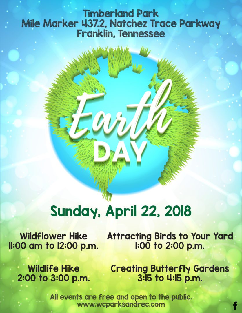 Timberland Park Natchez Trace Pkwy, Mile Marker 437.2, Franklin, TN, United StatesEarth Day is Sunday, April 22 Williamson County Parks and Recreation invites you to join the 1 billion people worldwide […]