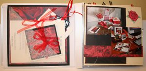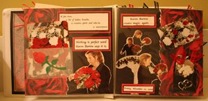 The last page – While the last page can be reserved for a picture of the couple on their honeymoon or the first anniversary, we always leave the last page to be devoted to space for a personal statement by the scrapbooking artist. This can include a picture of the artist with the bride and groom, and a note about why you did the book, why the couple is important to you, or a special memory from the events that you want the couple to remember.
